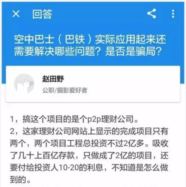 3、虽然“巴铁”曾经在宣传材料中宣称项目得到了“上海交大汽车研究院”可行性认证。可交大方面却一直不想与这个项目有任何联系,而且还一直想撇清关系,甚至透露这个项目只是学院的教授带着几个学生做的“私活”,而且论证的过程主要还是学生来操作的。 4、最重要的是,“巴铁”项目的背后其实是一个做网络金融P2P的理财公司在运作,而且该公司一直在吸纳投资人的存款,并承诺回以高额利息,但其资金链风险很高..