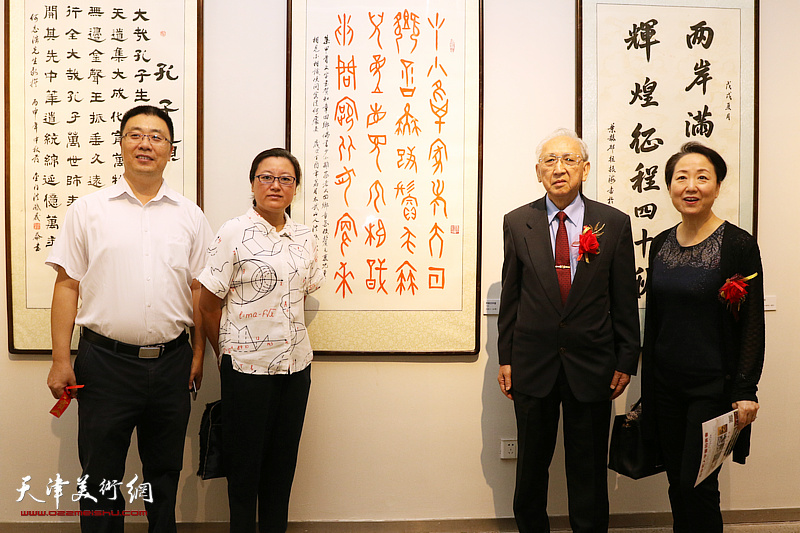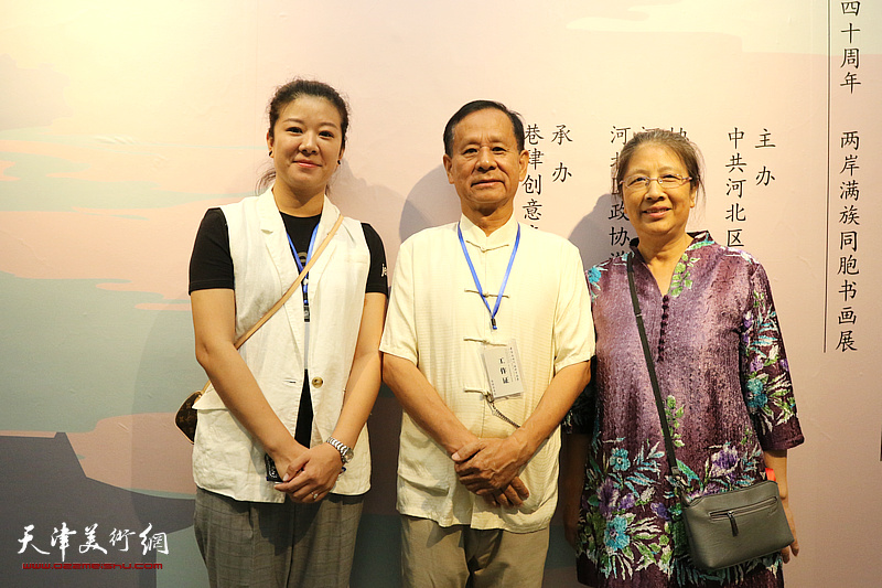 佟振海夫妇、佟静在展览现场。(图片来源:天津美术网)