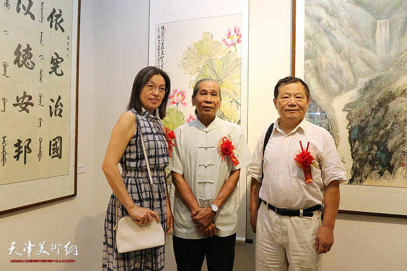 佟京桦与孟昭良、朱兵在展览现场。(图片来源:天津美术网)