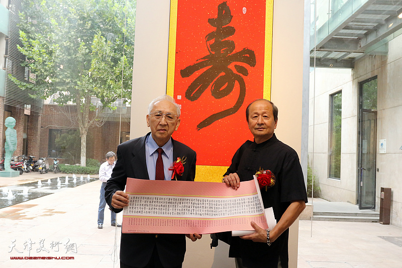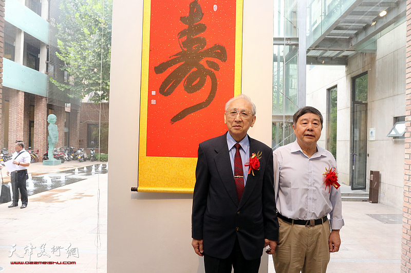 毓峋、洪启义在展览现场。(图片来源:天津美术网)