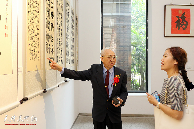毓峋、张明光在展览现场观看作品。(图片来源:天津美术网)