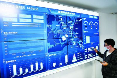 社区居家养老服务中心工作人员展示居家养老服务的相关程序。新华社发