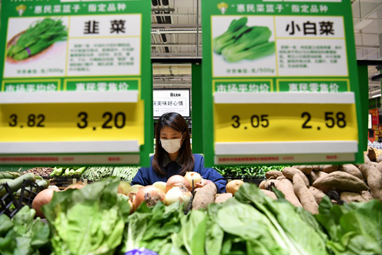 11月7日,市民在合肥市经开区芙蓉社区一家超市选购“惠民菜”。新华社记者 刘军喜 摄