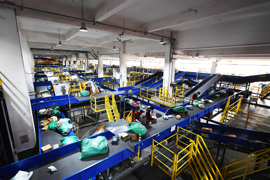 国家邮政局快递大数据平台数据显示,2021年中国快递业务量已达1000亿件,这是中国快递年业务量首次突破千亿级别,已连续8年稳居世界第一。新华社记者 张浩然 摄