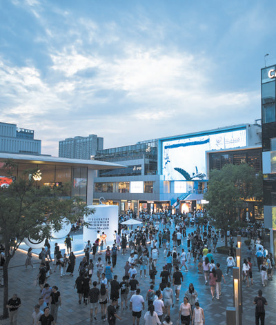 北京市三里屯太古里商圈引入品牌首店和旗舰店,吸引不少市民前来打卡、购物。