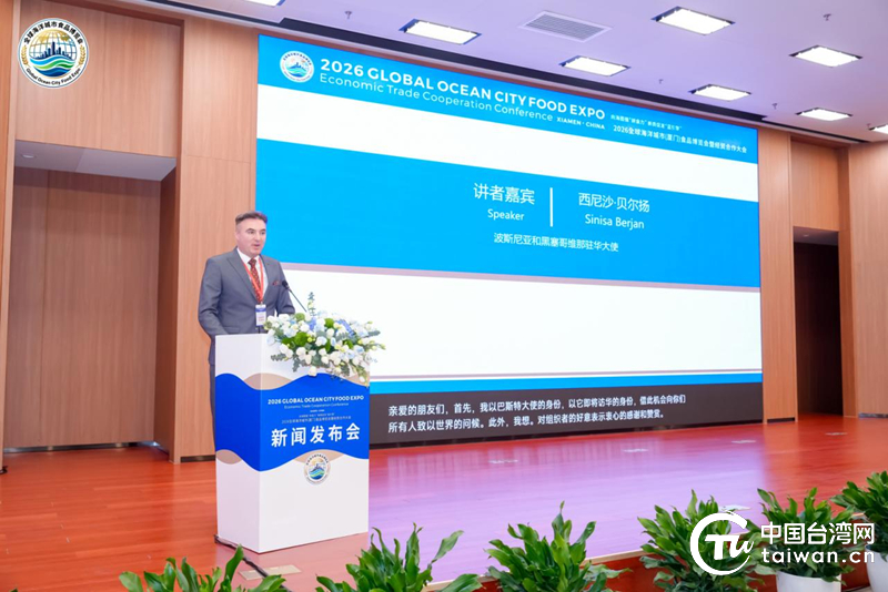 中国台湾网北京11月16日讯(记者 高斯斯 11月15日,2026全球海洋城市(厦门)食品博览会(简称“全球海博会”)组委会在北京举行发布会,向社会公布博览会重点活动安排及筹备进展。波斯尼亚和黑塞哥维那驻华大使西尼沙·贝尔扬、刚果共和国驻华大使馆参赞艾梅·埃托卡,中国食品报社社委委员、社长助理赵锋,中关村军民融合信息装备产业促进会会长管航以及主承办方单位领导,相关行业组织、科研机构、参展企业代表等共计160多人出席发布会,共同见证海洋经济领域这一重要盛会的筹备成果。