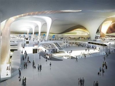 北京新机场由法国ADPI公司和英国女建筑师扎哈·哈迪德联合设计,新机场建成后每年将接待4500万名乘客,成为全球最大的机场。