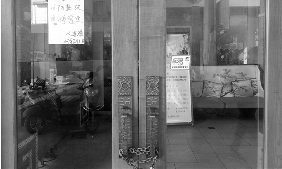 更多的场所不仅停业,还关门了。记者在“大富豪足道会馆”看到“消防整改,暂停营业”这样的纸条贴在门口。这家店原本也只提供足浴服务,后来经过装修,增加了汗蒸等项目。离这个足道馆几十米外,还有一家“西子人间会所”,同样大门紧闭。
