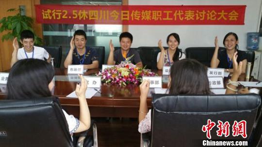 上述信息一出,在四川今日传媒集团公司便“立竿见影”,该公司在8月12日召开员工代表大会讨论2.5天休假制度,最后获得全票通过。